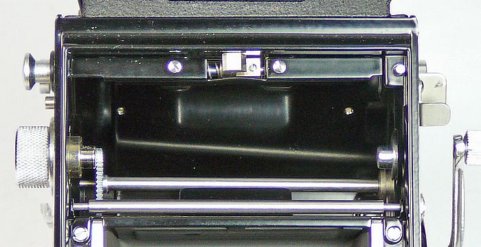 Film liegt bei dieser Kamera oben. Der Film wird von dort ohne weitere